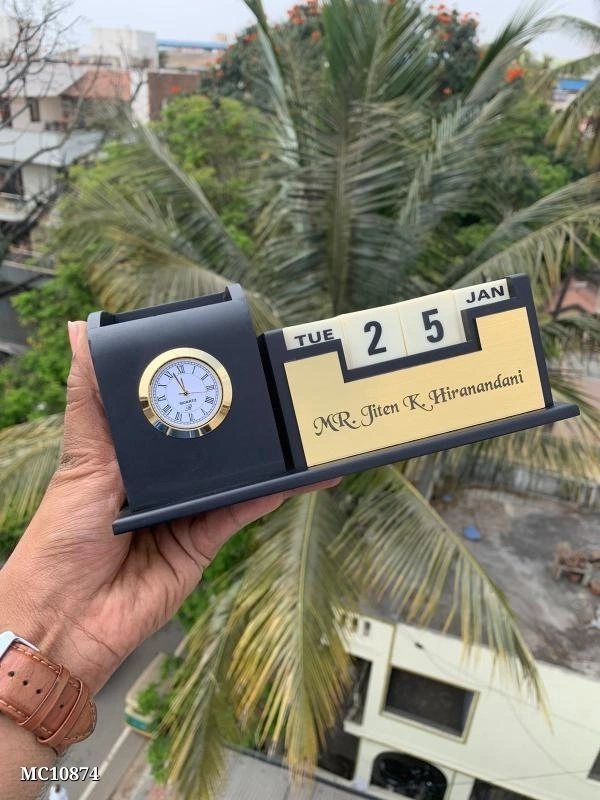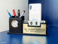 Catalog Name: *Pen stand*🔹Product ; Pen stand 4.0 Scope of name / Designation engraved🔹Comes with calendar date cubes , Organise pens , cards , mobile phone and stationary 🔹Material - Black MDFSize : 4*8 Inches🔹Dispatched on 3rd working day post payment*Price: ₹800 _*Free Shipping! _(good quality items, at wholesale prices)