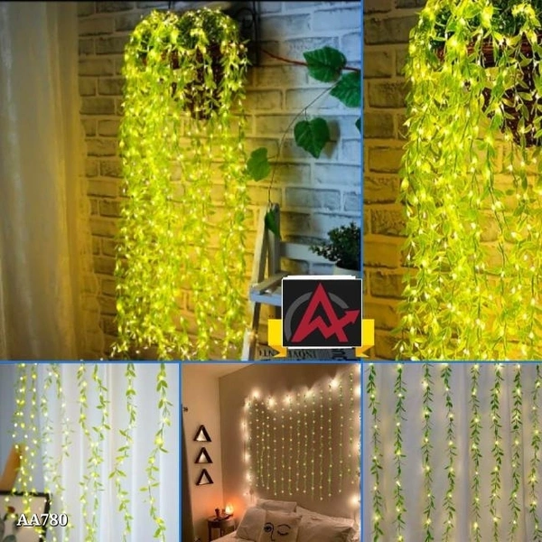 Curtain Lights**Curtain Lights, Fake Greenery Garland Willow Leaves with Lights for Wedding Party Backdrop Home Decoration,*Box Packing