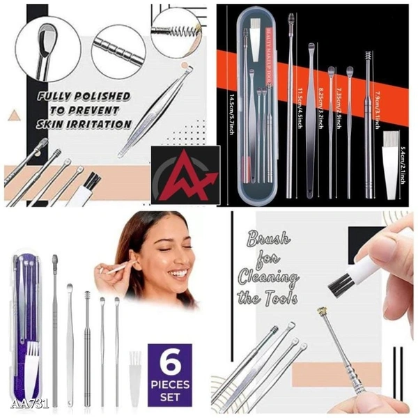 6 Pcs Ear Care Tools Set Ear Spoon Earwax Removal Curette Ear Cleaning Tool Ear Healty Care