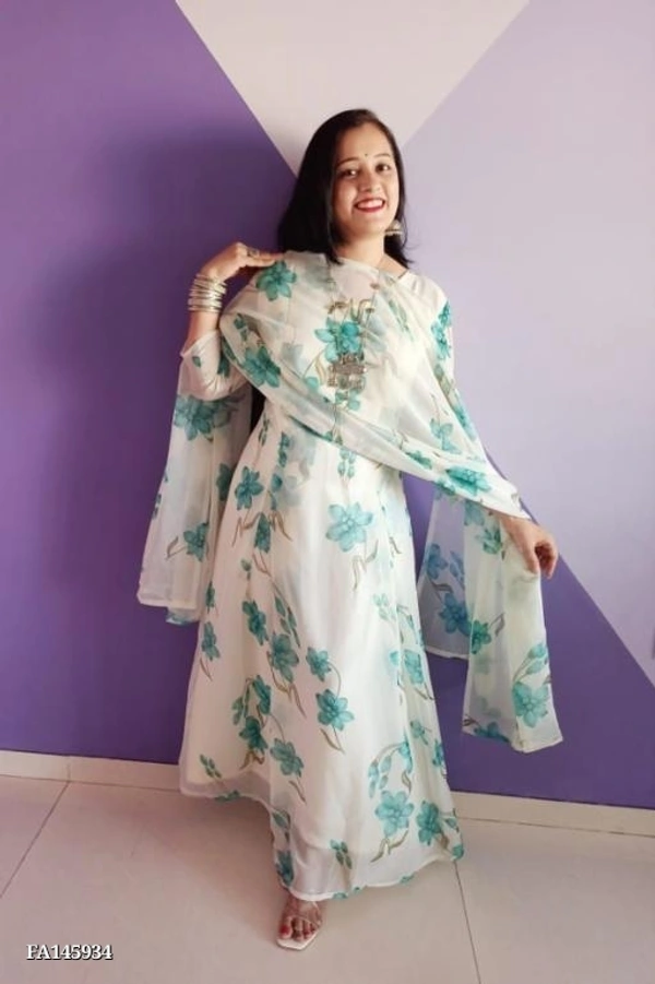 π* Gown Fabric*:Pure Heavy Georgette fabric with Digital Print With Full Sleeve *(FULLY STITCHED)*