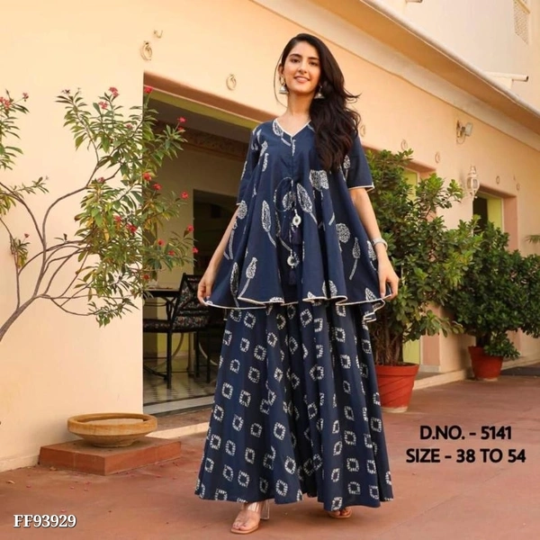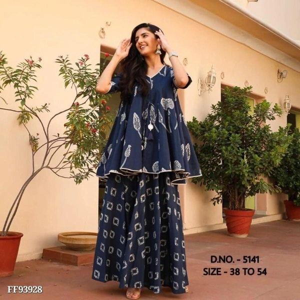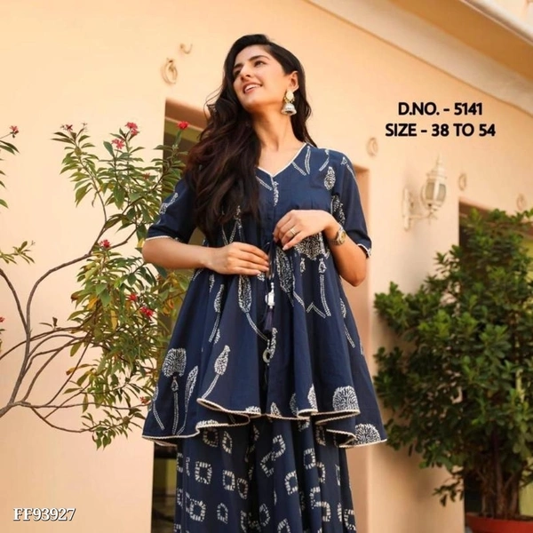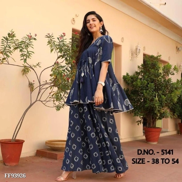 👗 *Beautiful Heavy Rayon 14 Kg. best Quality Fabric Kurti (Length - 36”) With Dori & Tussels, Print Work, Full Flared + Rayon Fabric Flared Palazzo With Print Work* 👗