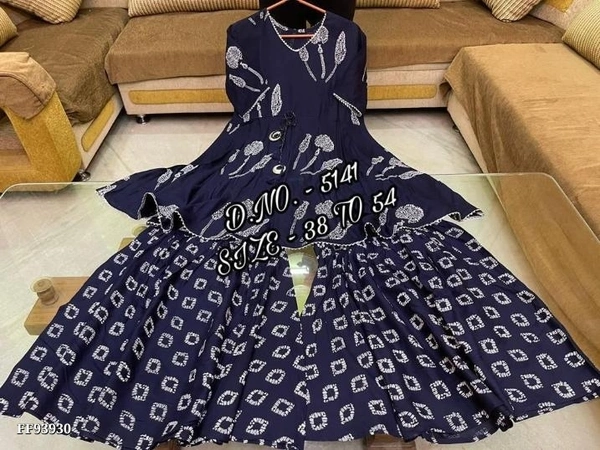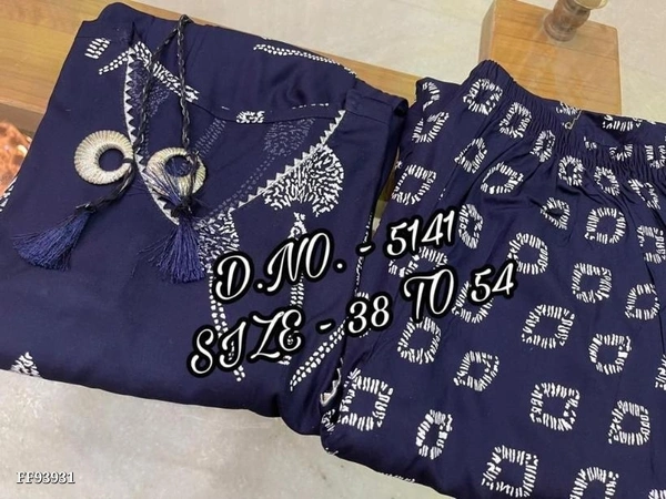 Heavy Rayon 14 Kg. best Quality Fabric Kurti (Length - 36”) With Dori & Tussels, Print Work, Full Flared + Rayon Fabric Flared Palazzo With Print Work**