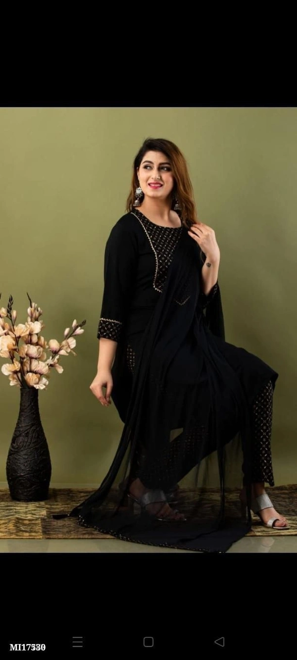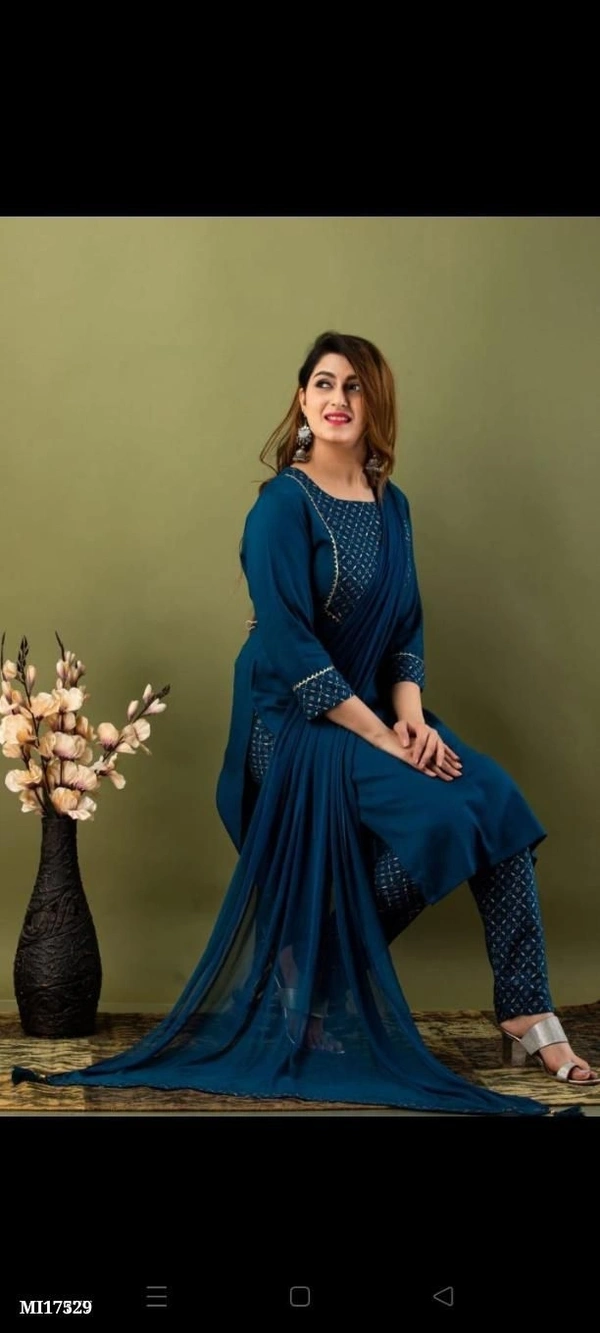 Beautiful heavy Rayon gold print work kurti pant with dupatta**